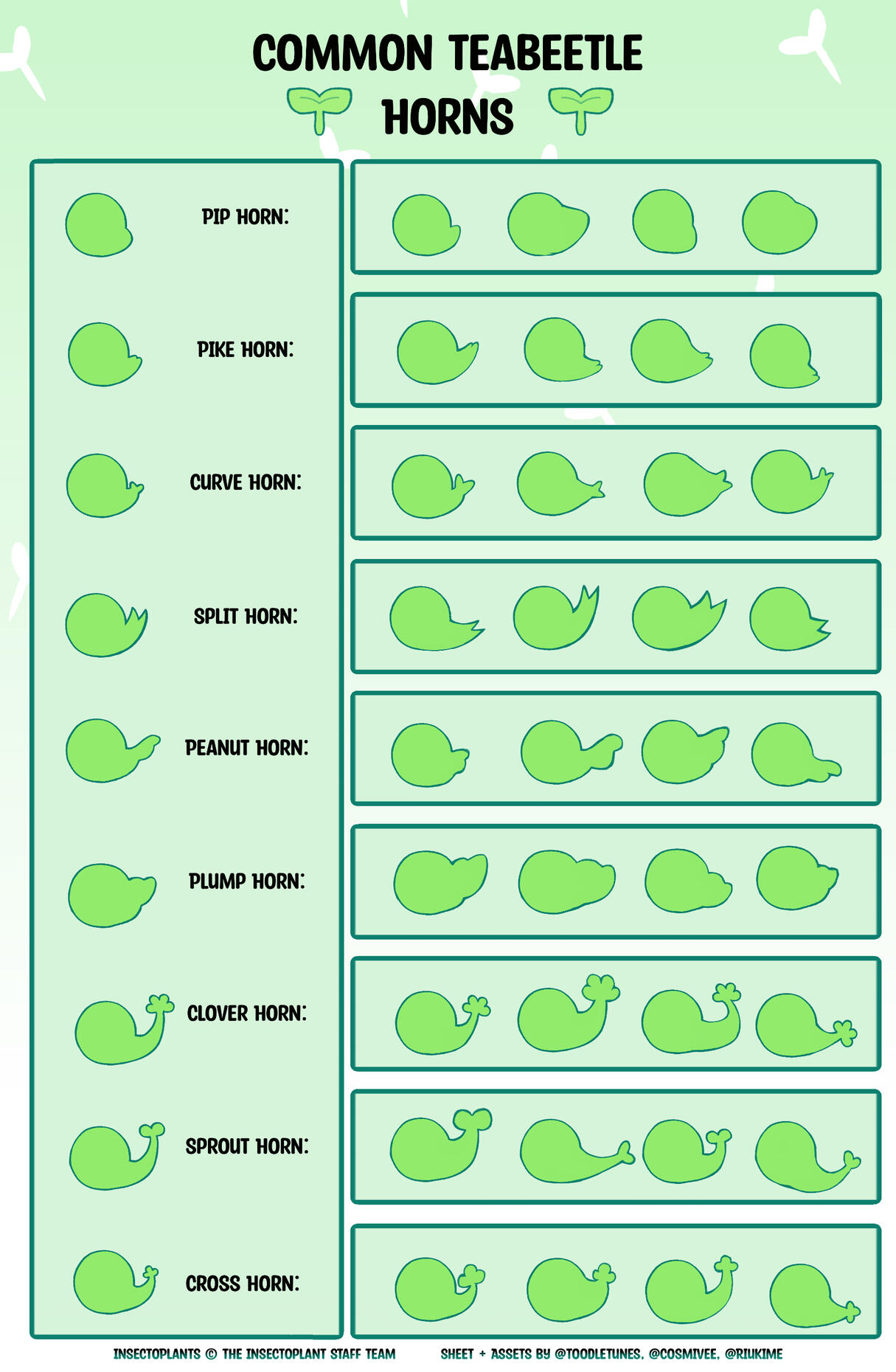 Teabeetles require a Horn trait, while the other subspecies have rounded snouts instead. All subspecies can now use nose horns as well, but its up to you and is totally optional! Otherwise all subspecies are able to utilize smooth snouts.