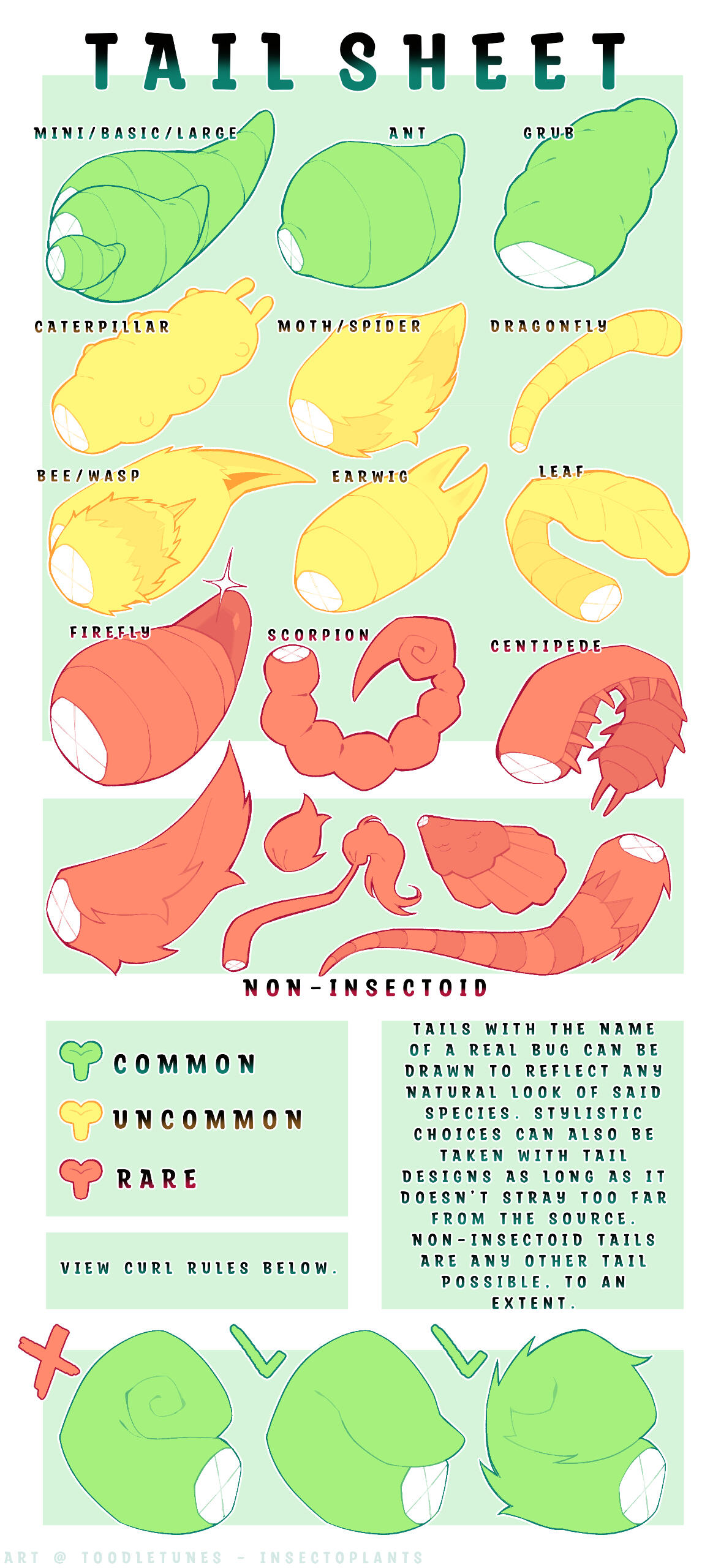 Large, Dino, Plush, and Slender Tails (some have been merged into a new tail type)