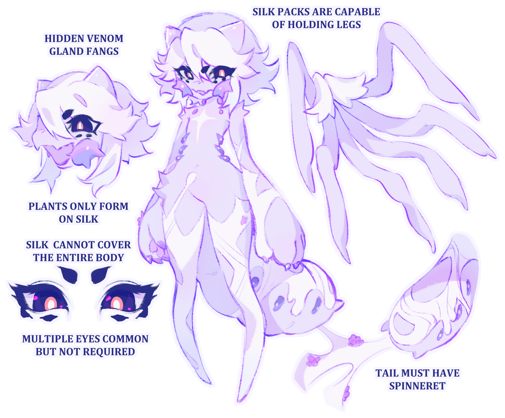Multiple limbs (spider legs, ties in with silk pack, packs hold legs)